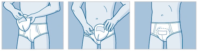 Das Anlegen der For Men Pads erfolgt recht einfach. Der Vorteil dieser Produkte ist, dass sie in herkömmlicher, eng anliegender Unterwäsche getragen können. Weite Boxershorts sind nicht geeignet.